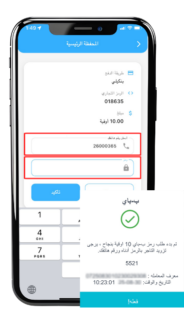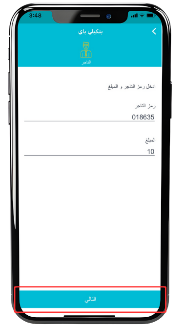 3.7 Saisissez le code commercial que vous avez copié ainsi que le montant, puis appuyez sur "Suivant".