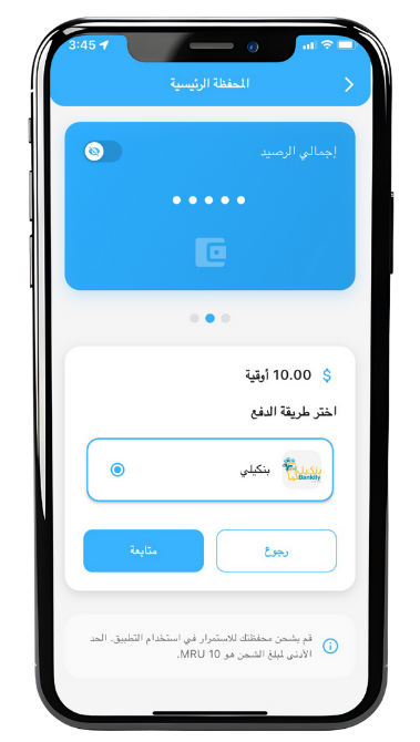 3.4 Sélectionnez le mode de paiement (exemple : Bankily), puis appuyez sur "Continuer".