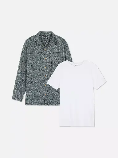 Ensemble chemise et t-shirt à manches longues Bleu sarcelle